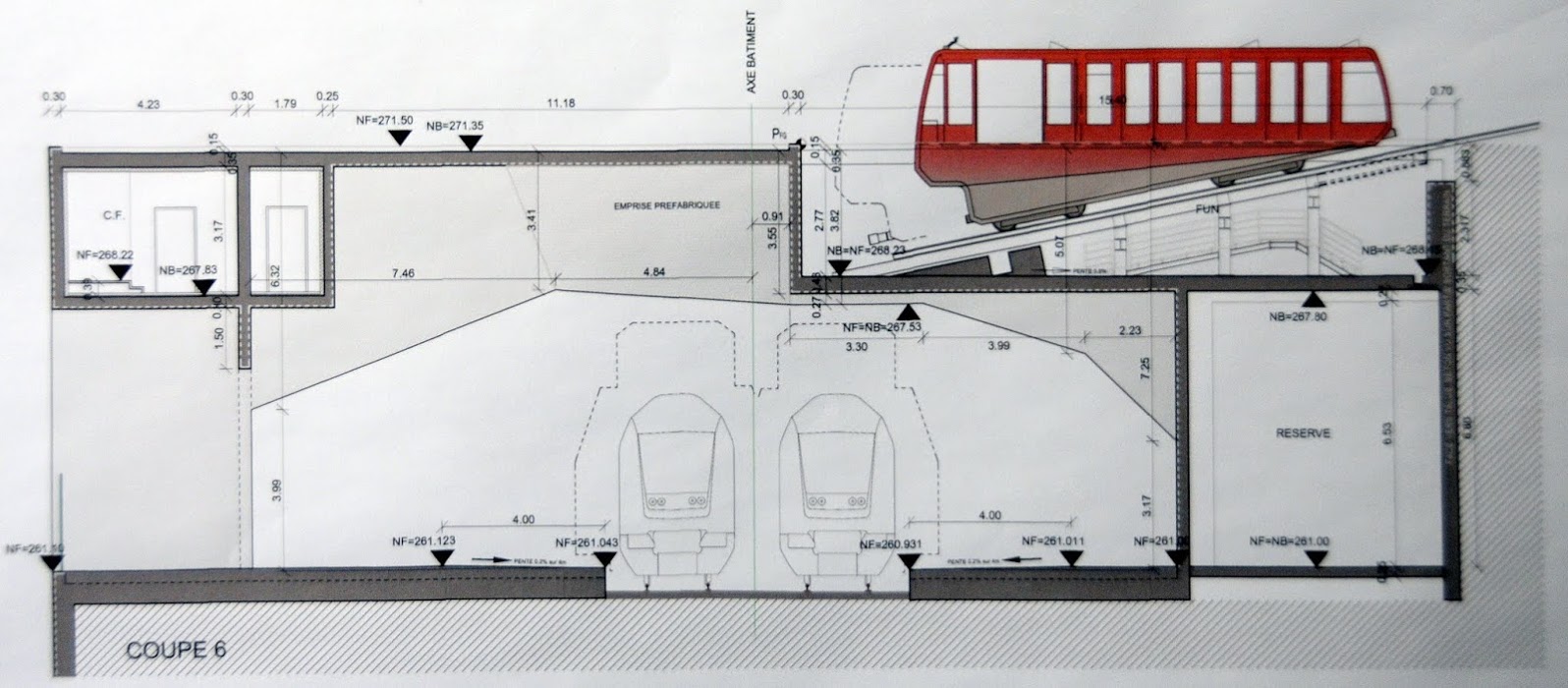 Le franchissement des 40 mètres de différence de niveau entre la ligne du Nord et le plateau du Kirchberg se fera par moyen de deux funiculaires (shuttles) indépendants. Cette solution permettra un transport confortable et rapide (63 secondes pour le transport de voyageurs entre la gare ferroviaire et l’arrêt de tram “Kirchberg-Pfaffenthal”).